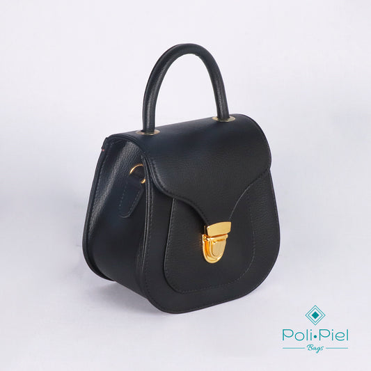 Gema: bolso estructurado en microfibra con doble manija y hebilla decorativa